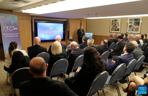 Chinese Ambassador to Israel Xiao Junzheng addresses the event of 10th-anniversary celebration of the China-Israel Changzhou Innovation Park in Tel Aviv, Israel, on Jan. 22, 2025. Addressing the event, Chinese Ambassador to Israel Xiao Junzheng highlighte