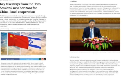 On 29 March 2025, Ambassador Xiao Junzheng published his signed article titled Key Takeaways from the "Two Sessions", New Horizons for China-Israel Cooperation on the website of Israel Hayom, the largest Hebrew newspaper in Israel.